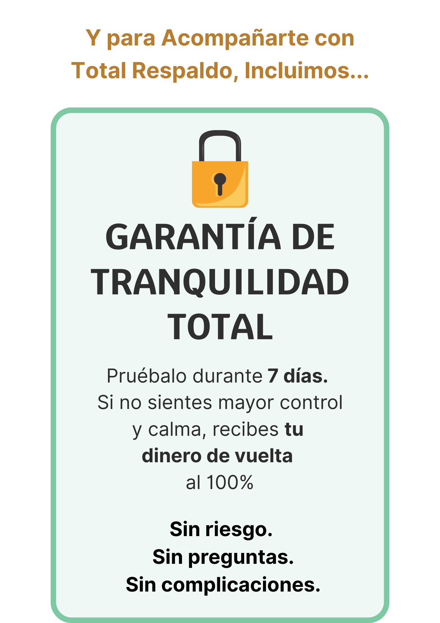 Confiamos plenamente en la efectividad de este eBook, por eso ofrecemos una garantía total de satisfacción. Tienes 7 días completos para explorarlo y comenzar a aplicarlo. Si no te sirve o no era lo que esperabas, simplemente escríbenos y te devolvemos tu dinero🤝